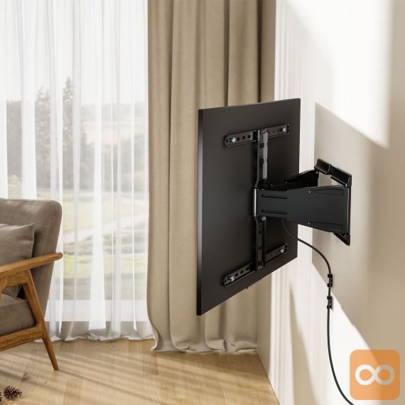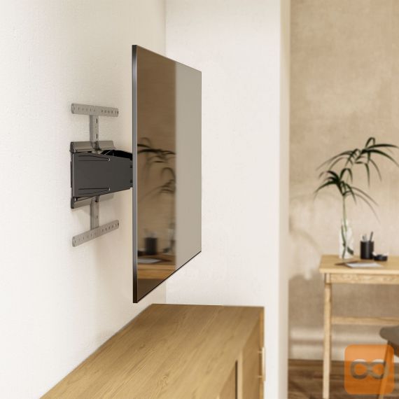 Zahvaljujoč ultra tanki zasnovi držalo KM1308 ne zavzame veliko prostora, hkrati pa poskrbi, da se televizor dobro prilega notranjosti in mu daje sodobno eleganco.