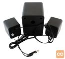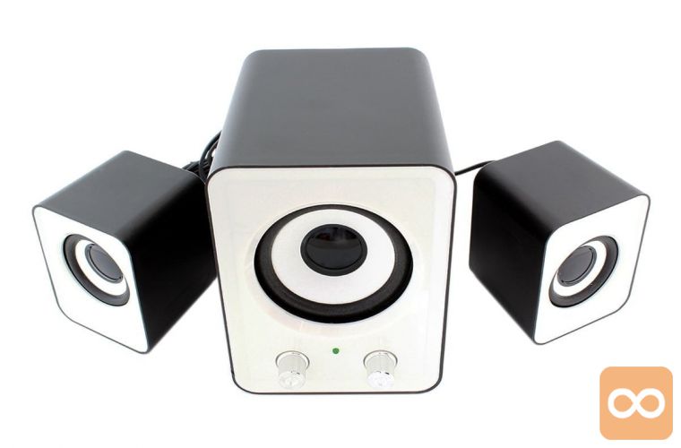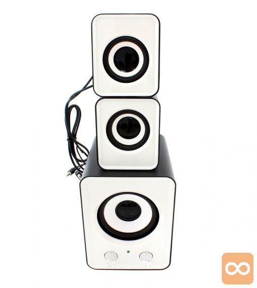 Kompaktni računalniški zvočniki Stereo + Subwoofer (2.1 sistem) z nazivno močjo 5W + 2x 3W, kar skupaj da 11W! Za njihovo napajanje zadostuje običajna vrata USB tipa A! Odlični so kot dopolnilo zvočnikom v prenosniku ali kot dodatni zvočniki za telefon, MP3 predvajalnik ali druge manjše avdio naprave. Zahvaljujoč uporabi USB tehnologije in 5V napajalniku so prenosni in popolnoma neodvisni od virov električne energije! Če jih želite zagnati, potrebujete le navaden powerbank ali polnilec za telefon in katerokoli avdio napravo, opremljeno s 3,5 mm mini jack priključkom!