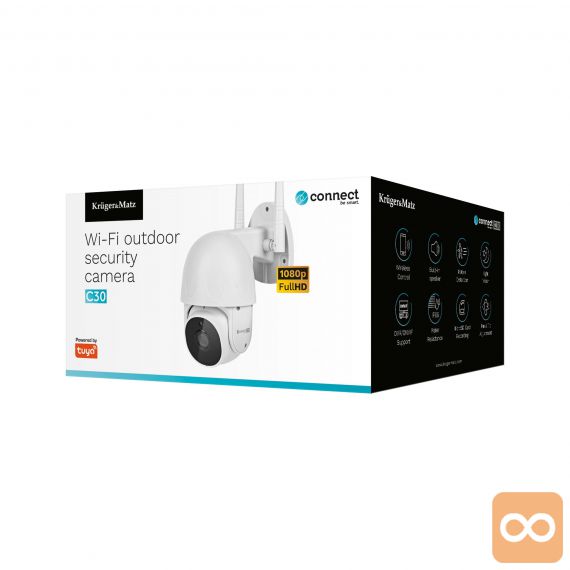 Brezžična kamera Kruger&Matz Connect C30 je popoln dodatek k opremi vašega pametnega doma. Zahvaljujoč Wi-Fi povezljivosti lahko napravo upravljate z aplikacijo TuyaSmart, tako da lahko kadar koli preverite, kje se nahajate, kaj se dogaja na vašem dvorišču.
