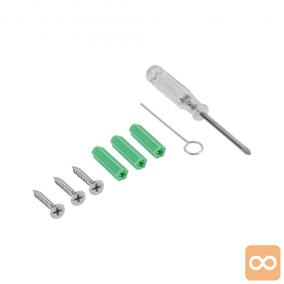 Priloženo: AC adapter (80 cm), pritrditev zatiči, vijaki, ključ