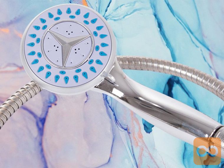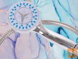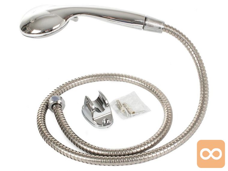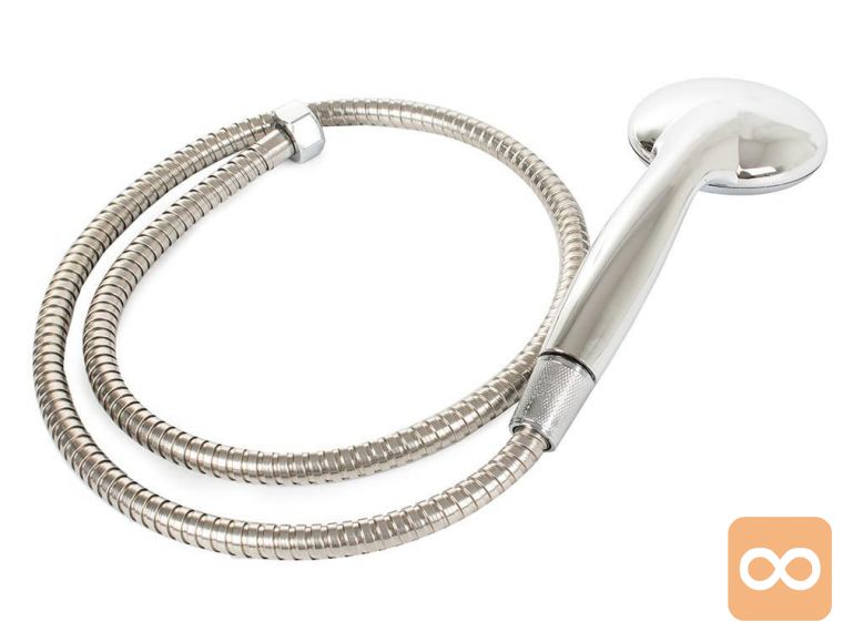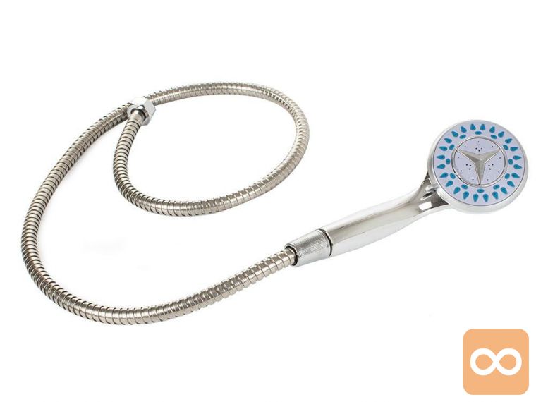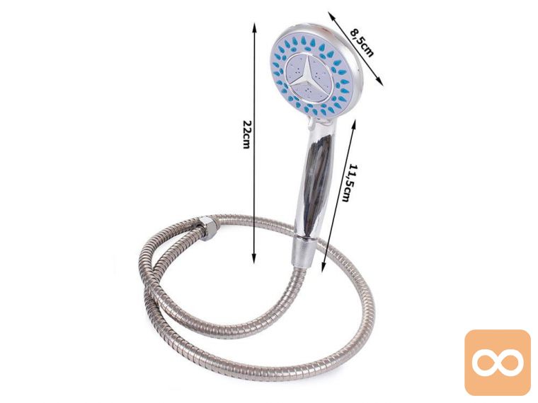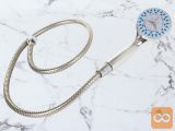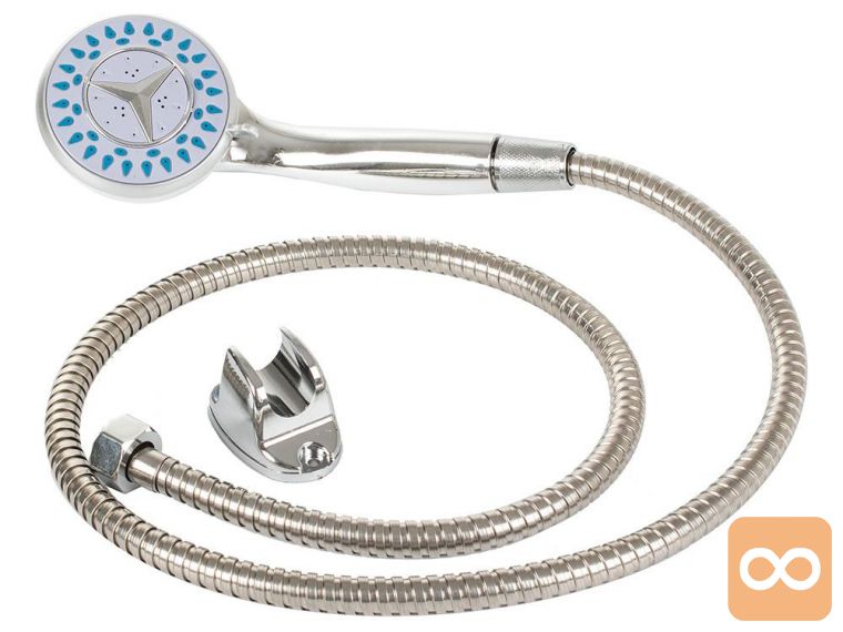 Trifunkcijska tuš glava z gumijastimi vstavki in dolgo cevjo, popolna za kad ali prho.