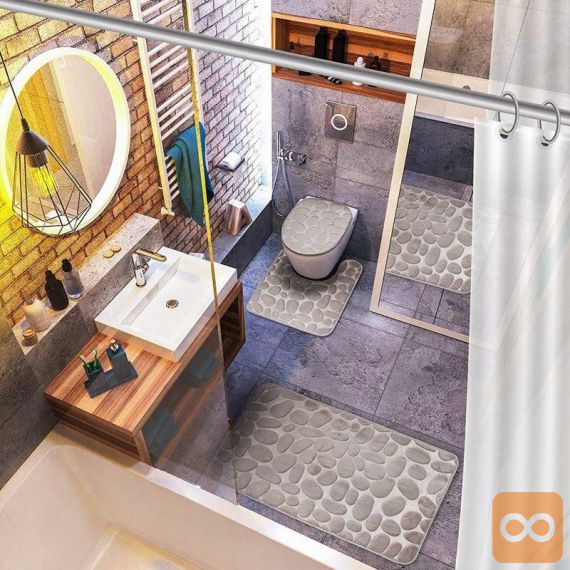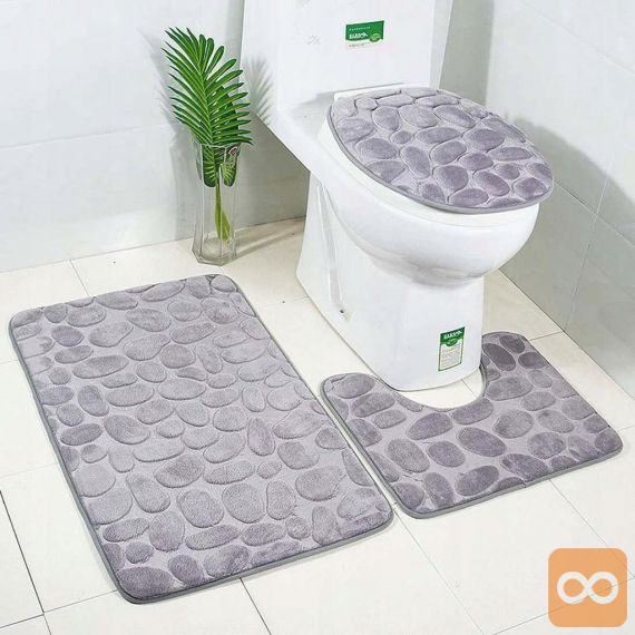 Set treh univerzalnih kopalniških preprog sivi kamni