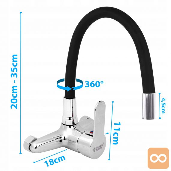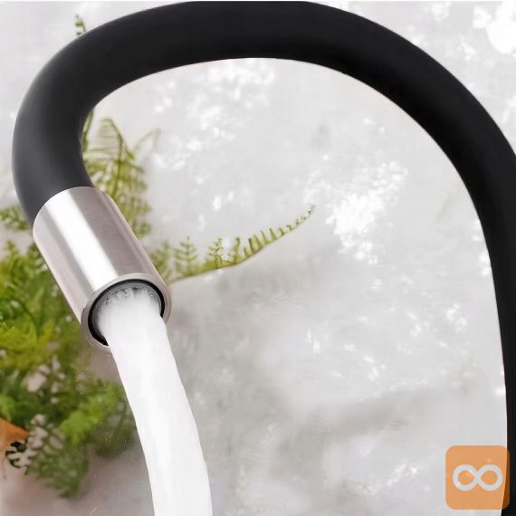Ta prilagodljiva stenska kuhinjska pipa s 360° fleksibilnim izlivom omogoča priročno pomivanje posode in polnjenje velikih loncev. Stenska namestitev prihrani prostor okoli pomivalnega korita, moderna črna oblika pa kuhinji doda eleganco in slog.