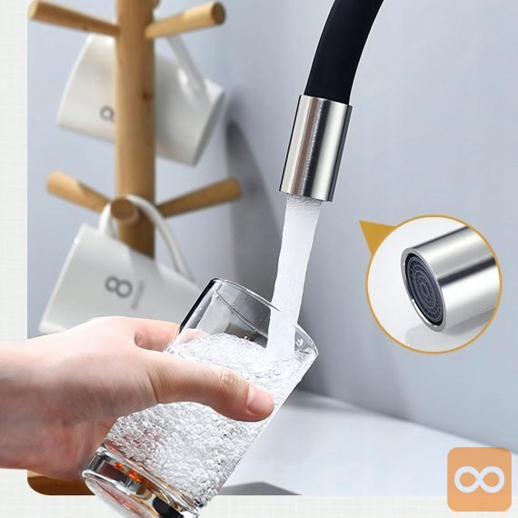 Pomivanje zelenjave, polnjenje loncev ali izpiranje pomivalnega korita – vse to lahko storite priročno, brez nepotrebnih akrobacij. Ta rešitev ne le poveča udobje, temveč zaradi natančne usmeritve curka tudi prihrani vodo.