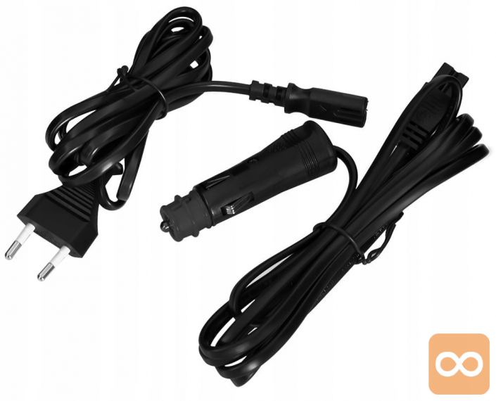 - DVE VTIČNICI – hladilnik lahko uporabljate tako v avtu (ima standardno vtičnico z vhodom za vžigalnik) kot v prostorih kot je kamp hišica ali hiša na parceli (ima drugo vtičnico za priklop na električno omrežje ).
