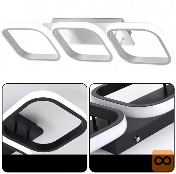 - Popoln dekorativni element s tremi prefinjenimi, zaobljenimi LED trakovi.