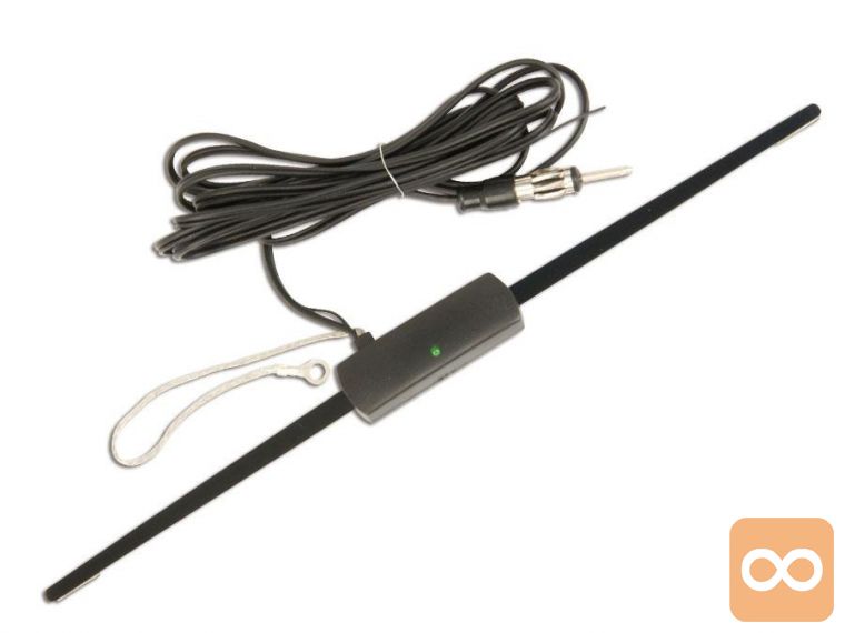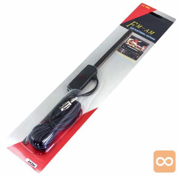Odlična kakovost sobne AM-FM radijske antene za avto. Naprava ima ojačevalnik signala in dolg kabel za enostavno namestitev. Napaja se s standardno 12V napetostjo iz cigaretnega vžigalnika.