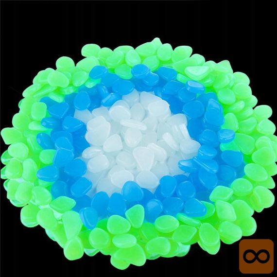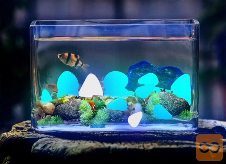 Svetleči kamni so izdelani iz posebnega materiala, ki podnevi vpija svetlobo, ponoči pa sveti. Njihovi robovi so nežno polirani, zaradi česar so varni in brez tveganja. So nestrupeni in brez okusa , zato jih lahko uspešno postavite tudi v akvarij.