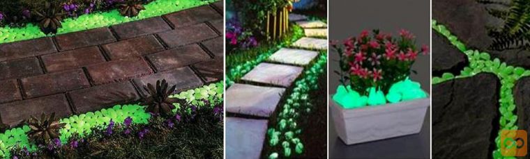 • NE POTREBUJEJO ELEKTRIKE – kamni čez dan absorbirajo svetlobo, zvečer pa žarijo. Zahvaljujoč svojim fluorescentnim lastnostim kamni odkrivajo čudovit sijaj, ki daje neverjeten vtis. Čas osvetlitve bo ustrezal času osvetlitve v skladu s pojavom fluorescence. Kamni so odporni na vremenske vplive.