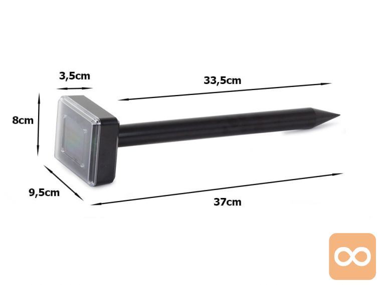 Po namestitvi v tla škodljivce odžene elektronsko ustvarjene vibracij.
