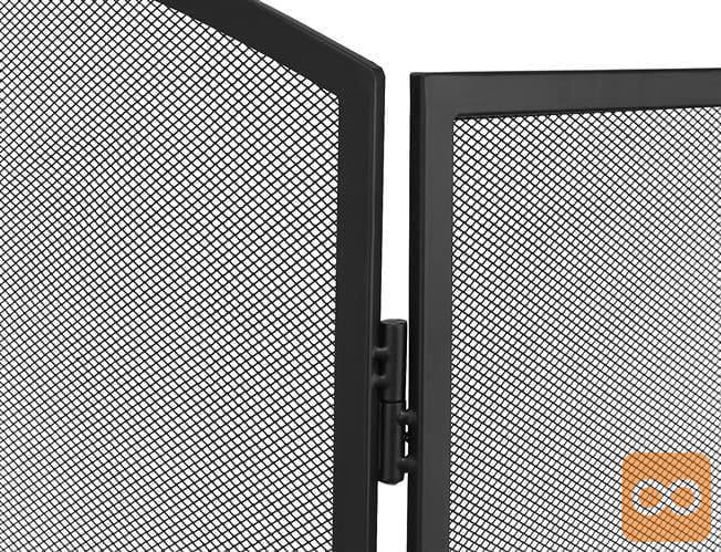 Zaslon za kamin se uporablja v primeru uporabe kaminov z odprtim kuriščem in brez zaščitnega stekla, ki preprečuje izpadanje isker ali gorečih delcev goriva. Učinkovito ščiti podlago in druge elemente v bližini kamina pred nenamernim vžigom, ki bi lahko povzročil požar. Zaslon je izdelan iz jeklenega okvirja in fine mreže , ki omogoča opazovanje peči, hkrati pa nudi praktično zaščito pred nevarnostjo požara.
