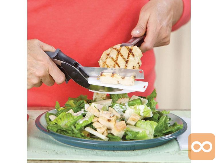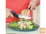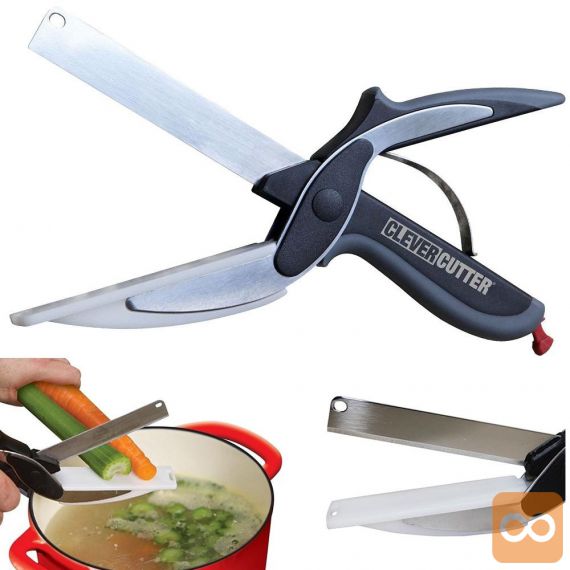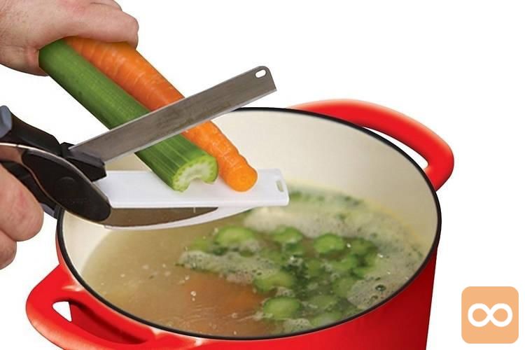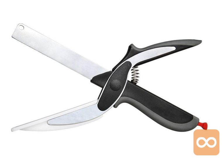 Naprava je idealna za hitro, varno in priročno rezanje zelenjave, mesa in sadja. Škarje bodo rezale kumare za solato, krompir, sir, jabolka in še marsikaj. Imajo tudi desko, na primer za sekljanje zelenjave.