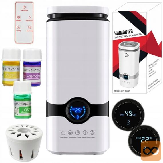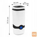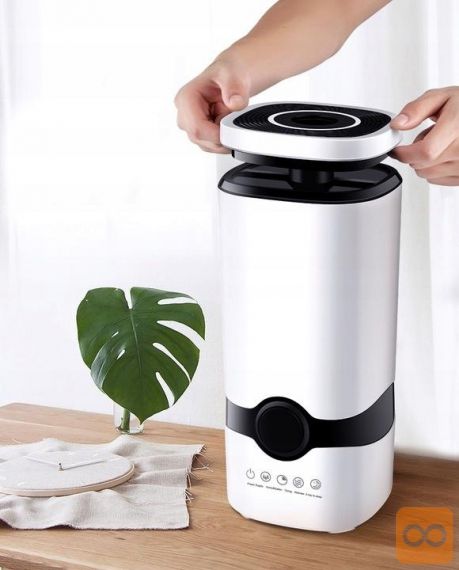 • SPECIFIKACIJA – Bela barva; material: plastika; moč: 28W; obseg: 20m2; prostornina rezervoarja: 4l; učinkovitost: 300ml / h; ionizator: DA; higrostat: DA; časovnik: DA; plošča na dotik: DA; priložen daljinski upravljalnik: DA; nočni način: DA; sprememba jakosti pare: DA; način stalne vlažnosti: DA; olja v kompletu: 3; mere: 14/14/37 cm; teža: 0,950 kg