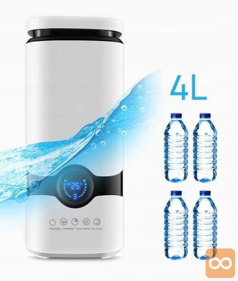• TIHO DELOVANJE – ultrazvočni vlažilec zraka proizvaja signal s frekvenco milijonkrat na sekundo. Vlažilec zraka ustvarja najnižji možni hrup, zaradi česar ni obremenjujoč za člane gospodinjstva – še posebej bo primeren za otroke , katerih spanec je pogosto plitek. Vlažilec zraka ne bo oviral pri vsakodnevnih opravilih ali delu. Brez težav lahko hodi vso noč in ne bo motil spanca , ravno nasprotno – izboljšal bo njegovo kakovost in uporabnik bo bolj spočit, meglica, ki izhaja, vam bo omogočila sprostitev in zmanjšala stres, nakopičen čez dan. Naprava ima način nočne svetlobe, ko je vlažilec vklopljen, sveti z mehko modro svetlobo.