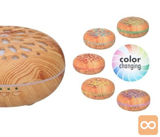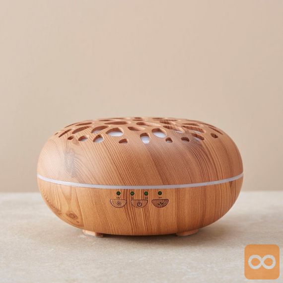 S svojim videzom lesa in izsekanim vzorcem resnično doda nekaj vašemu interierju. Različne barve LED in oddajanje meglice dajejo prijetno vzdušje.