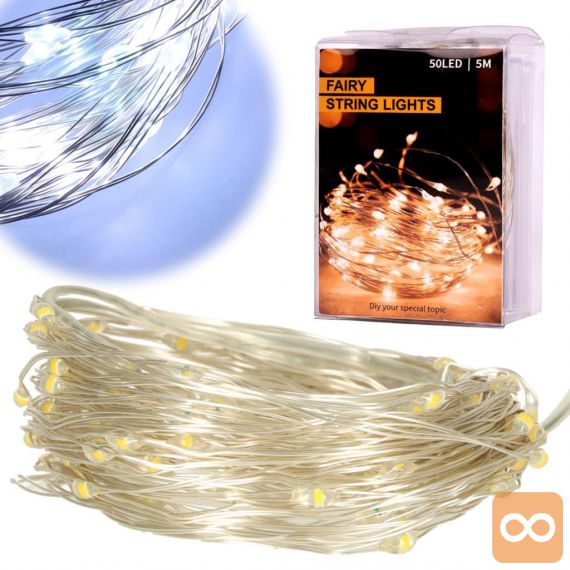 50 lučk na 5 metrih žice bo krasilo prostor in osvetljevalo božično okrasje. Ker je žica tanka, jo je enostavno skriti v igle in bo božično drevo izgledalo čarobno.