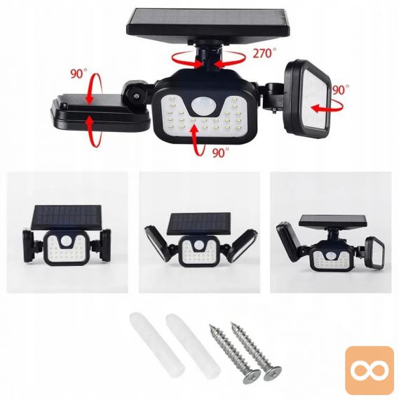 Naprava je opremljena s tremi reflektorji , ki jih je mogoče nastaviti v poljuben položaj, da natančno osvetlijo vse kotičke in špranje na vašem posestvu.