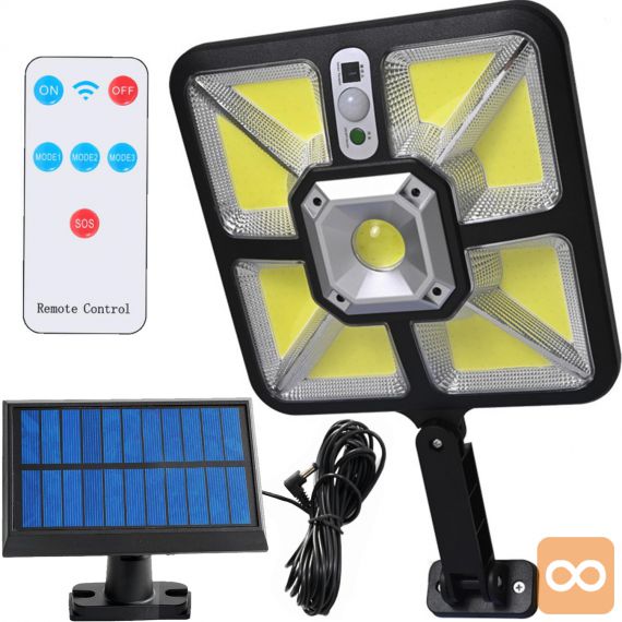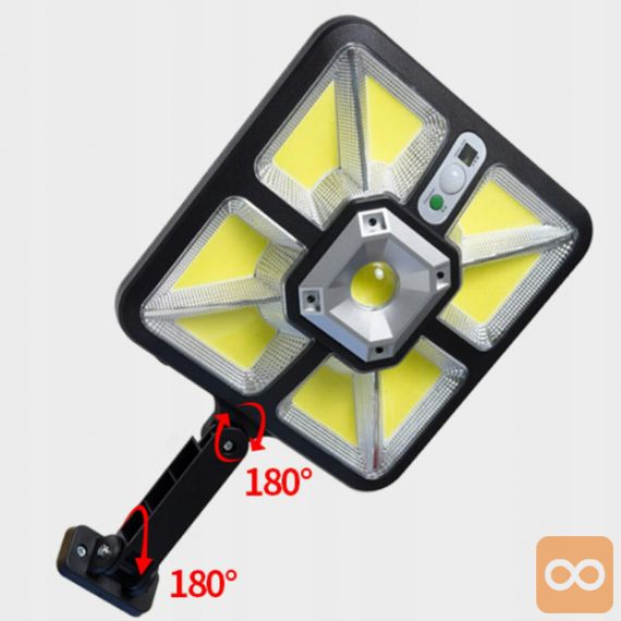 Učinkovita solarna svetilka z 235 COB LED je neusahljiv vir brezplačne energije za vaš dom. Namestite ga kjer koli, kjer je izpostavljena sončni energiji. Izdelek je vodotesen, zato vam ni treba skrbeti, da bi se svetilka v slabem vremenu razbila. V kompletu je daljinski upravljalnik, s pomočjo katerega lahko prilagodite način delovanja svetilke ali jo enostavno ugasnete.