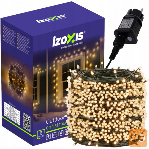 Zahvaljujoč 500 toplo belim LED diodam in dolžini 35 metrov bodo te svetilke znamke IZOXIS ustvarile edinstveno vzdušje, polno svetlobe – tako v vaši dnevni sobi kot na balkonu, terasi ali fasadi. 8 načinov osvetlitve, vključno z učinkom bliskavice, vam bo omogočilo, da svetlobo prilagodite svojemu razpoloženju – od nežnega utripanja do prave božične pojedine!