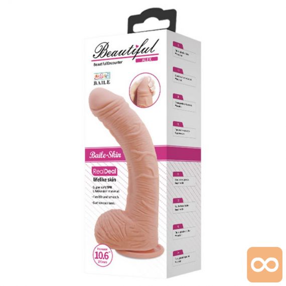 Dildo Beautiful Alex bo navdušil z izjemno prilagodljivostjo in dejstvom, da na las spominja na pravi penis. Skrbno izdelani detajli v kombinaciji z mehkim materialom se bodo ob uporabi občutili zelo naravno. Dildo je na voljo v večji velikosti in ima močno sesalno dno.