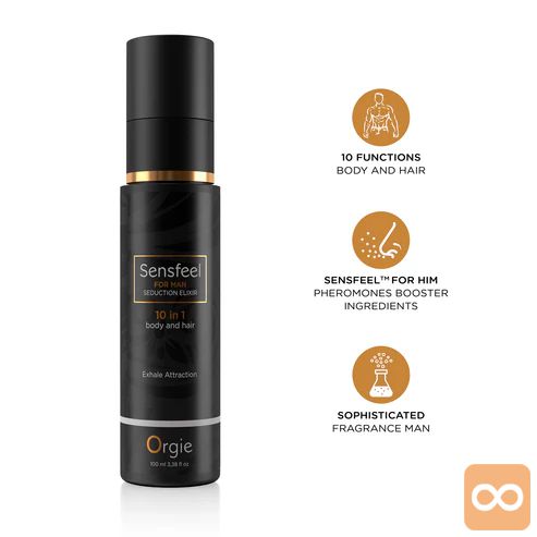 Sensfeel Seduction Men je feromonski elixir formuliran z aktivno sestavino Sensfeel For Him v kombinaciji z elegantno dišavo parfuma in ostalih sestavin s katerimi bo ta izdelek popolna izbira za vsakega moškega. Elixir ima 10 funkcij v 1, in sicer: vlažilec telesa, svilnata koža, UV filter za lase, izboljšanje poškodovanih lasnih konic, proti zapletanju las, barvna zaščita in mehkoba las, razelektritev las, dišava afrodiziak in povečanje spolne privlačnosti.