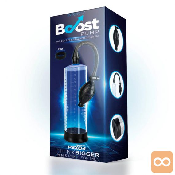 Z erekcijsko črpalko Boost Pump PSX04 boste prejeli zadovoljive rezultate tako v povečanju kot tudi trdnejši erekciji. Črpalka ima praktično ročno žarnico s katero boste enostavno črpalki vakuum v cev in tako preko merilnika na cevi postopoma spremljali rast vašega penisa. Črpalka odlično služi svojemu namenu, lahko pa jo dodatno popestrite z dodatki iz kolekcije Boost, in sicer vložkom ali nastavkom v realistični obliki.