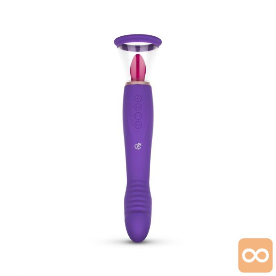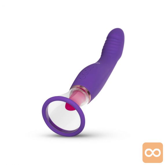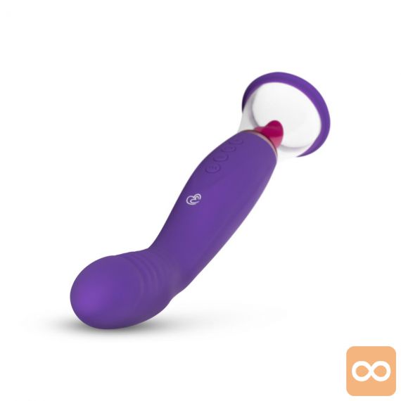Klitoralni stimulator Easytoys Vibe Pleasure Pump je razkošna 3-v-1 erotična igračka, ki združuje vakuumsko črpalko, dražeči jeziček in vibrator za G-točko. Vakuumski pokrovčki ustvarjajo zapeljivo sesanje, ki poveča občutljivost in prekrvavitev, medtem ko mehki jeziček razvaja klitoris z različnimi gibi. Drugi konec igračke skriva G-točkovni vibrator, oblikovan z rebrci, ki poskrbijo za intenzivnejšo penetracijo.