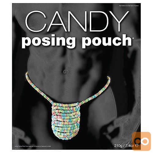 Tangice Candy Possing Pouch so v celoti izdelane iz bonbonov. Kako se boste lotili teh sladkih bonbončkov, pa lahko ostane zgolj plod vaše bujne domišljije. Tanga hlačke so prilagodljive velikosti in bodo poskrbele za prijetno (okusno) popestritev v spalnici.