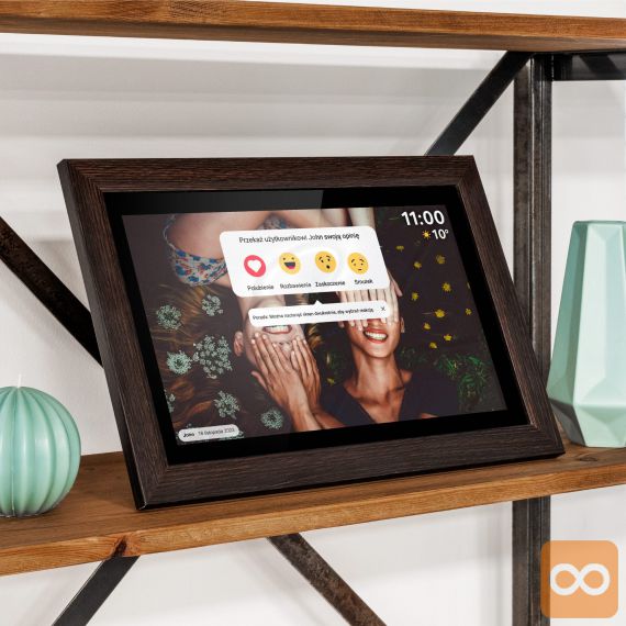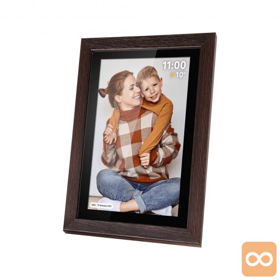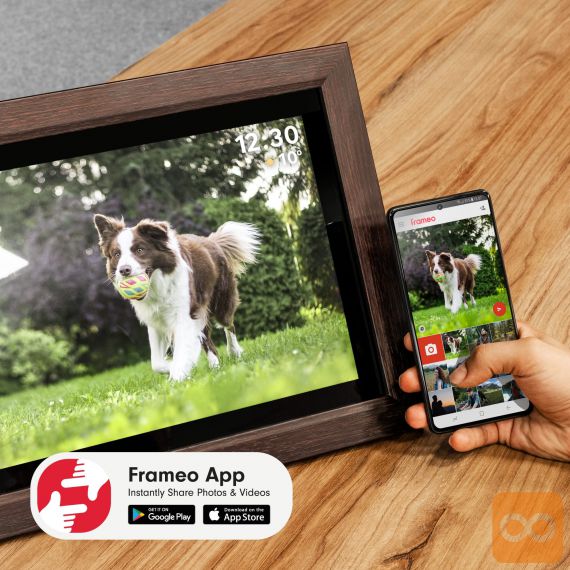 Oživite svoje najlepše spomine in jih delite z najbližjimi na popolnoma nov način! Digitalni foto okvir FRAMEO je elegantna in moderna naprava, ki s 15,6-palčnim zaslonom na dotik v visoki ločljivosti omogoča prikazovanje fotografij in kratkih videoposnetkov. Okvir se prek Wi-Fi povezave poveže s spletom, kar vam omogoča, da na daljavo pošiljate fotografije iz telefona neposredno v okvir – kjerkoli že ste. Z elegantnim lesenim okvirjem se bo ujel v vsak dom, vgrajen zvočnik pa bo spominom dodal še zvočno dimenzijo.