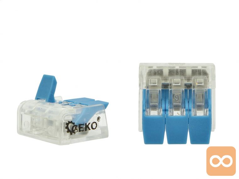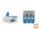 Električni hitri konektor namenjen hitrim povezavam žičnih in vijačnih žic. Izdelan iz visokokakovostne prozorne plastike, omogoča preverjanje razporeditve kabla znotraj konektorja.