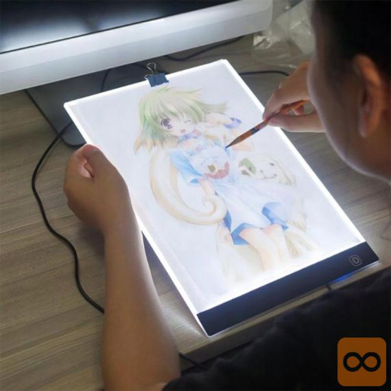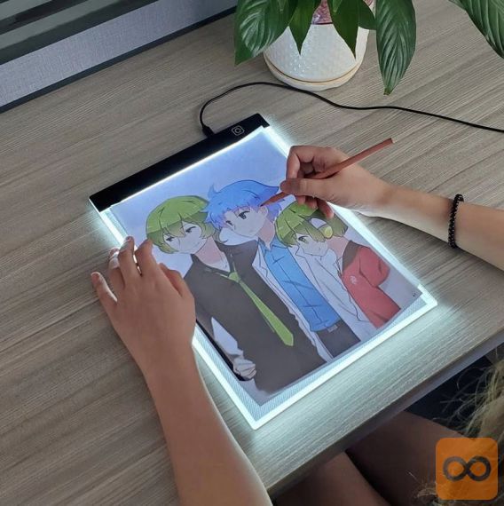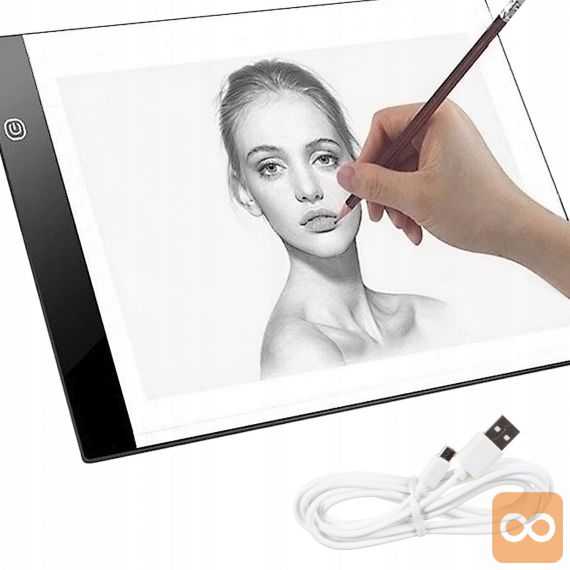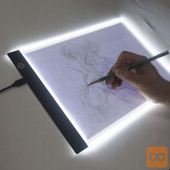 Tabla za risanje je izdelana iz akrila, je bolj trpežna in vzdržljivejša od navadnega stekla.Enakomerna osvetlitev plošče filtrira škodljive žarke in ščiti oči pred neugodno svetlobo. Desko lahko brez naprezanja oči uporabljamo več ur. Celotna tabla je temeljito osvetljena – kopiranje risbe je enostavno, zato je delo z njo odlično!Plošča se napaja preko USB kabla – priključimo jo lahko na računalnik, prenosnik, powerbank ali omrežni vtič. Porabi malo električne energije , zato ga lahko vzamete ven in uporabljate z napajalnikom. Je lahek, zato ga transport ne predstavlja težav, zlahka ga spravite v torbo.