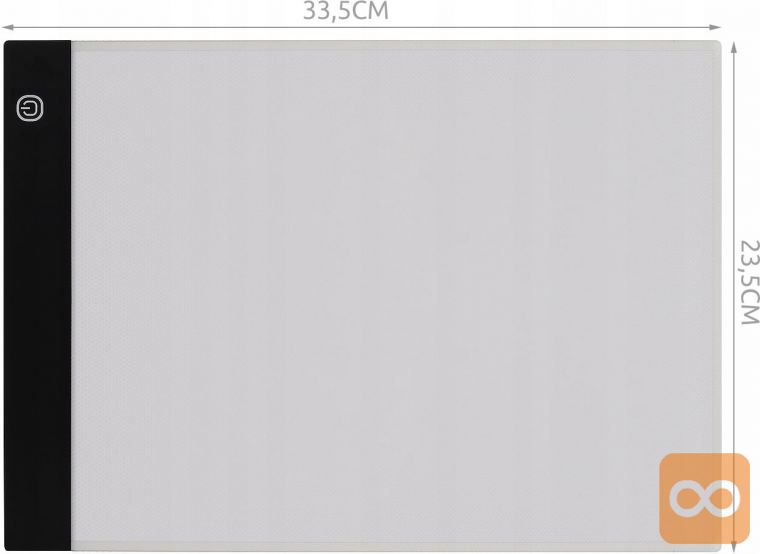 - SPECIFIKACIJA – material: akril; moč: 1,8W; funkcija zaščite oči: da; največja velikost: a4; mere (dolžina / širina / debelina) 33,5 / 23,5 / 0,4 cm; dolžina kabla: 150 cm; teža kompleta: 0,41 kg; teža z embalažo: 0,43 kg.