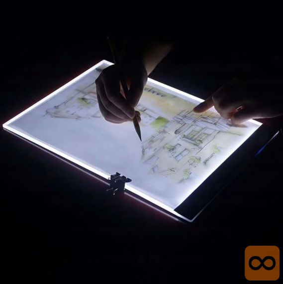 - ULTRA TANEK DIZAJN – izdelek ima ultra tanko podlago, debeline le 4 mm . Tabla je lahka, a elegantna in praktična. Z lahkoto se prilega v torbico in njen transport je brez težav . Tabela je velikosti listov a4. Izdelan iz akrila, ki je bolj trpežen od navadnega stekla. Izdelek lahko uporabljajo tako ljudje, ki rišejo za hobi, kot tudi v arhitekturnih studiih, oblikovalskih in geodetskih studiih ter v tattoo studiih.