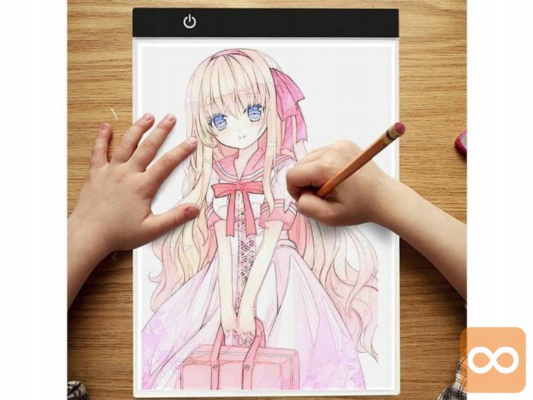 - FUNKCIJA ZAŠČITE OČI – svetlobna plošča filtrira škodljive žarke in ščiti oči pred neugodno svetlobo . Enakomerna svetloba nam omogoča večurno uporabo deske brez utrujanja vida. Kako deluje? Dovolj je, da risbo, ki jo želite narisati, položite na tablo, nato položite prazen list papirja, vključite ustrezno osvetlitev ozadja in ponovno narišete sliko.