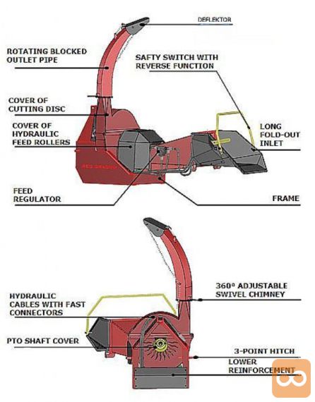 S hidravličnimi valji, možnost nastavitve dolžine sekancev.