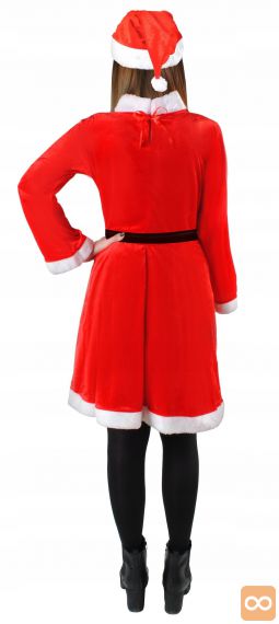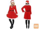 Lepa ženska obleka s snežinkami / gospa božiček. Komplet vsebuje kapo s čopom, obleko z mehko krzneno obrobo in čopki ter pas. Obleka je popolna za Miklavževo, božič, pa tudi za prireditve, promocije itd. Na otip prijeten material, ki posnema velur.