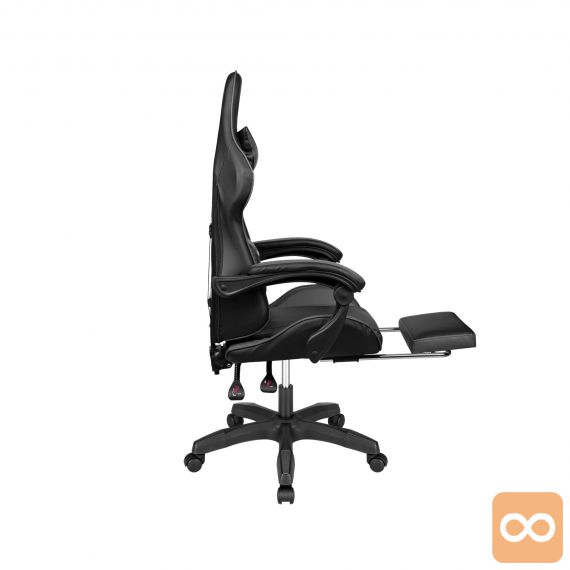 Uživajte v ultimativnem udobju in podpori z našim nastavljivim oblazinjenim igralnim računalniškim stolom GX-150 v elegantni črni barvi. Ta vrhunski igralni stol je zasnovan za dolge ure igranja ali dela za računalnikom, ponuja pa ergonomsko oblikovanje, izjemno podporo ter dodatno oporo za noge, ki omogoča popolno sprostitev. Stol GX-150 združuje stil, funkcionalnost in vrhunsko udobje, kar ga naredi popolnega za vsakogar, ki preživi veliko časa pred računalnikom.