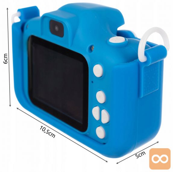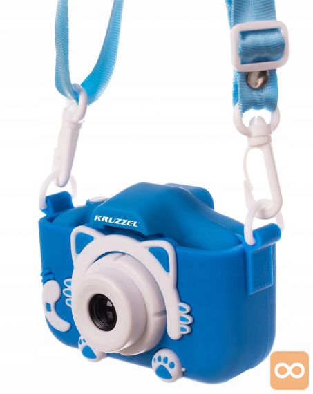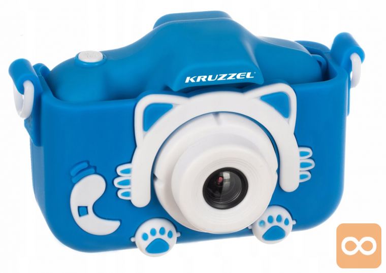 - SPECIFIKACIJA – barva: modra; starost: 3+; ločljivost fotografije: 3 MP; video ločljivost: 1080P, 720P, VGA; dodatna prevleka: imitacija mačke; selfi kamera; zmogljivost fotoaparata brez kartice: za 50 fotografij; vključena pomnilniška kartica: miniSD 16 GB; Dolžina kabla MicroUSB: 68 cm; ohranjevalnik zaslona: da; samodejni izklop: da; meni v različnih jezikih: da; 600 mAh baterija; ABS material; čas polnjenja: 2h; čas neprekinjenega dela: 2h; čas intermitentnega dela: 4-6h, mere: 5 / 10,5 / 6cm, teža kamere: 0,057 kg; teža z embalažo: 0,245 kg.