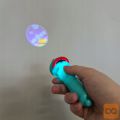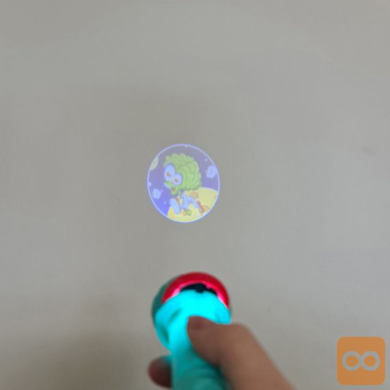 Mini projektor je zelo enostaven za uporabo. V kompletu so baterije, ki so že v napravi. Pokrov samo potisnite čez gumb, ki vklopi igračo in nato vanj vstavite izbrani ščit s slikami. Nato z rumenim gumbom vklopite napravo in usmerite v steno, strop itd.