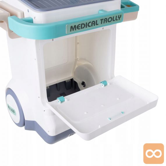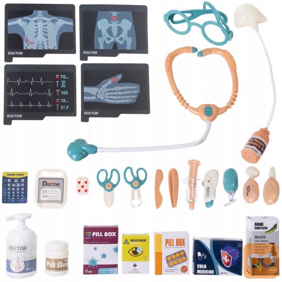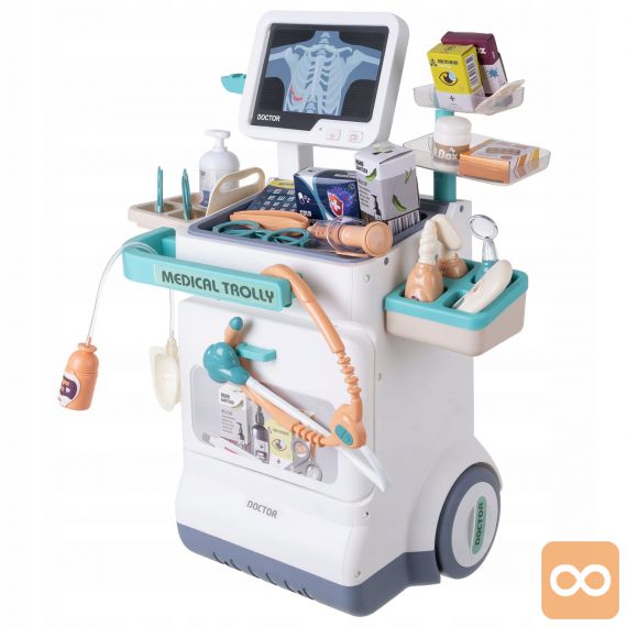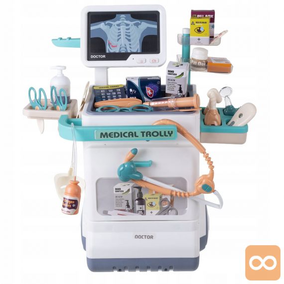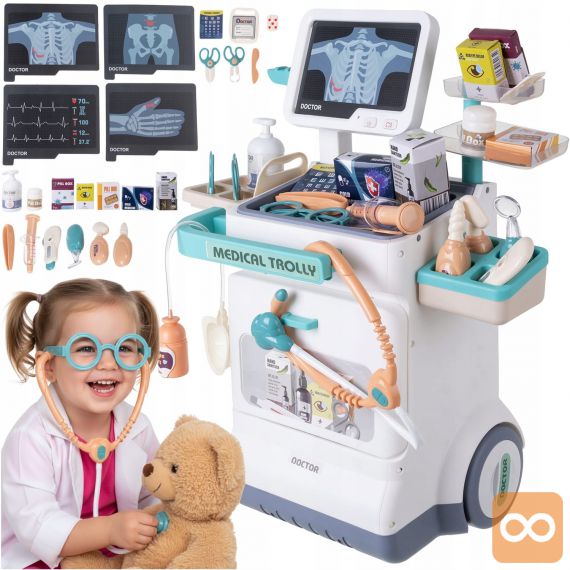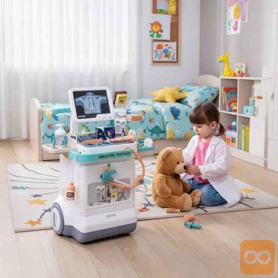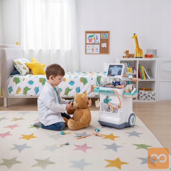 – Prava zdravniška postaja doma – velik medicinski voziček z EKG in rentgensko ploščo, policami ter svetlobnimi in zvočnimi učinki omogoča otroku, da se počuti kot pravi zdravnik.