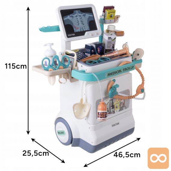 Pripravite se, da bo vaš malček postal najboljši zdravnik v mestu z XXL 26-delnim zdravniškim kompletom, ki vključuje tudi premičen voziček, realistične LED luči in zvočne efekte! Ta izjemno obsežen set je zasnovan za ure poučne in ustvarjalne igre vlog, ki otrokom pomaga premagati strah pred obiski zdravnika.