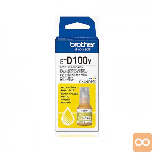 Originalno črnilo Brother BTD100Y Yellow s kapaciteto tiska 5000 strani. Črnilo je del serije BT-D100.