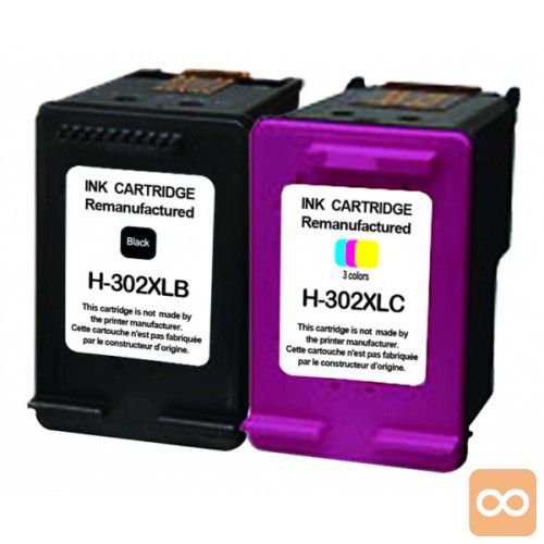 Komplet črne in barvne kompatibilne kartuše HP 302 XXL z večjo kapaciteto tiska od originalnih kartuš. Kompatibilne kartuše HP 302 XXL imajo kar 135% več črnila od originalnih XL kartuš. Kakovost tiska je zagotovljena s spodaj navedenimi standardi kakovosti. Kartuše so del serije nr. 302.