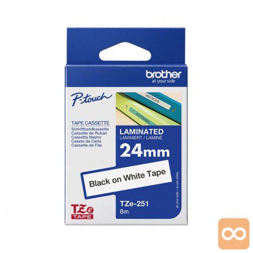 Trakovi > Trakovi za Brother (TZe / HSe), Mat nelaminirani trak Brother TZEN251 – brez bleščanja za čitljivost pod močno svetlobo...
