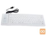 Popolnoma nova silikonska upogljiva tipkovnica standardne velikosti. Je odličen, izjemno praktičen in predvsem vodotesen izum. Silikonska tipkovnica je tudi odporna na vodo in prah ter zaradi svoje zasnove popolnoma tiha. Posebno nedrseče dno preprečuje premikanje tipkovnice med uporabo.