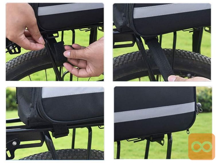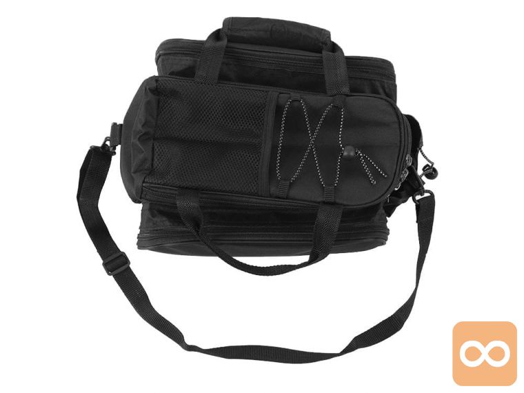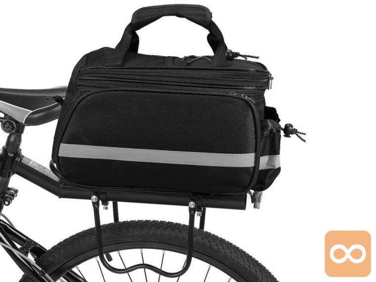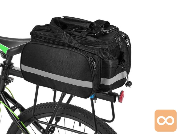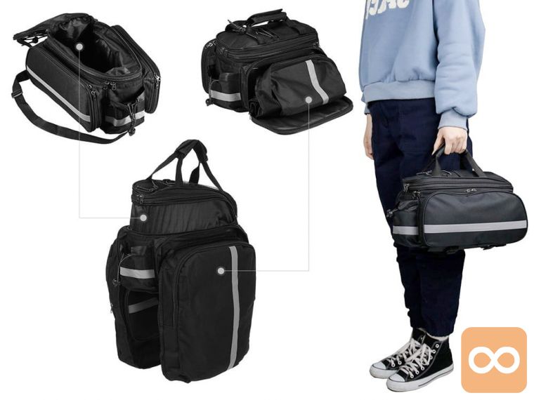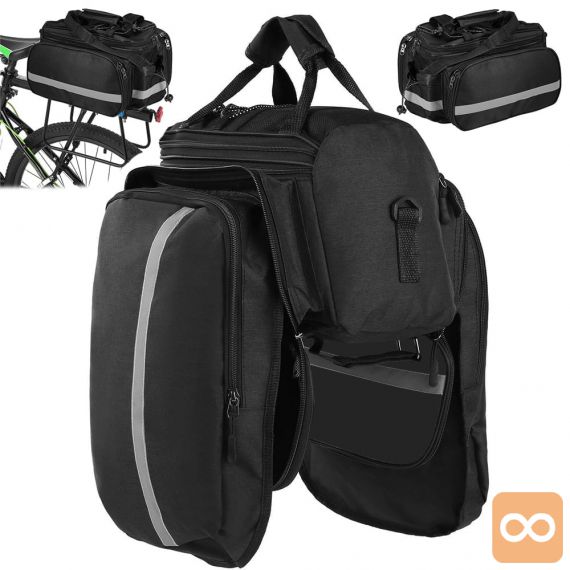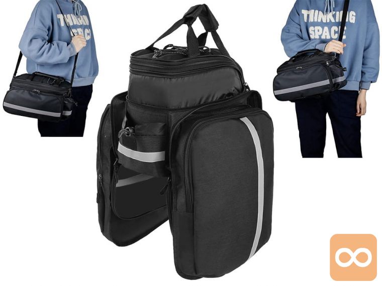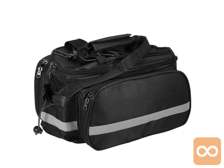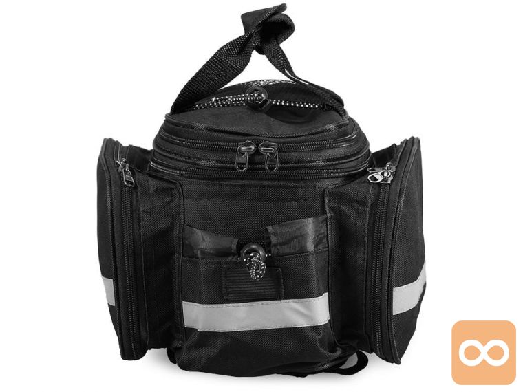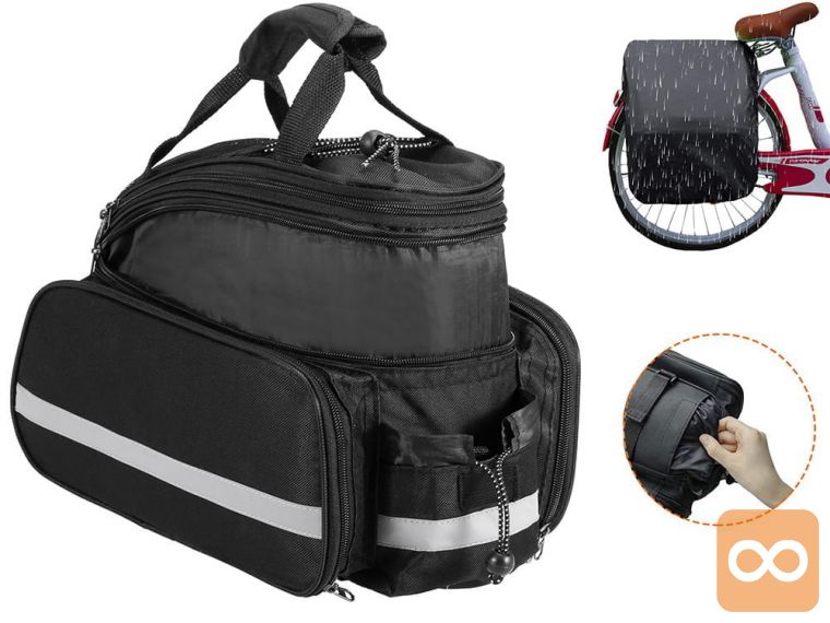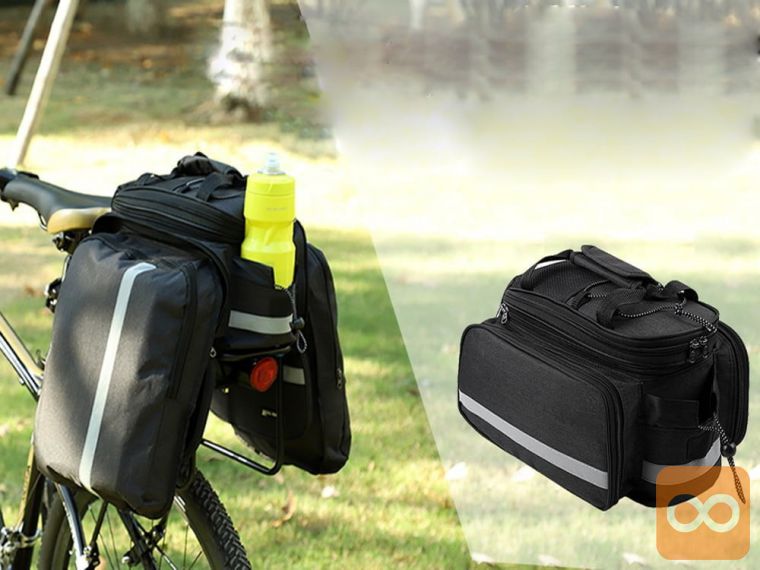 Večnamenska velika kolesarska torba, nameščena na prtljažnik. Izjemno uporaben med daljšimi kolesarskimi izleti, vanj lahko spakirate oblačila, malenkosti, hrano . Zelo prostoren, dodatno ima dežno prevleko.
