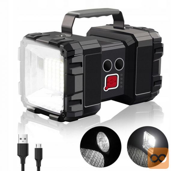Vzdržljiva LED svetilka z ročajem je obvezna oprema za vse, ki radi aktivno preživljate čas v naravi. Močan sprednji svetlobni žarek , ki ga ustvarja naprava, dodatni zadnji reflektor in način rdeče luči bodo pomagali v mnogih težkih situacijah. Naprava ima veliko, učinkovito baterijo s kapaciteto do 10.000 mAh , ki zagotavlja do 20 ur neprekinjenega svetenja!