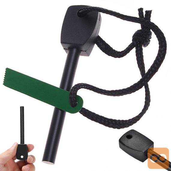Praktični magnezijev kremenček . Izdelan je bil iz posebne magnezijeve zlitine. Vse skupaj je obešeno na vrvici. Iskre vam omogočajo, da zanetite ogenj v vsakem vremenu in na kateri koli višini, tudi ko je kremen moker. Njegovo uporabnost cenijo tudi lovci, ribiči, pohodniki, ljubitelji tekkinga in preživetja.
