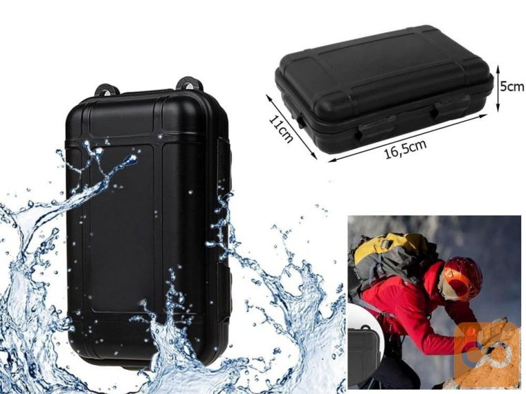 Kovček iz trpežne plastike , v katerega boste brez težav spravili celoten komplet za preživetje. Zaradi varnosti je podložen z gobico za zaščito orodja v primeru padca. Škatla se zapira s priročnimi zapahi. Dimenzije ohišja: 11 cm x 16,5 cm x 5 cm
