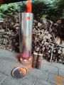 Zagotavlja močno toploto in deluje na brikete ali drva – brez elektrike in brez plina.